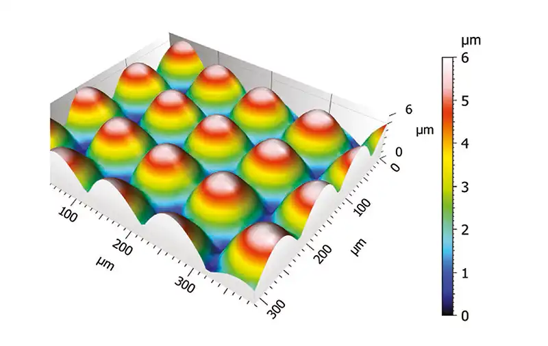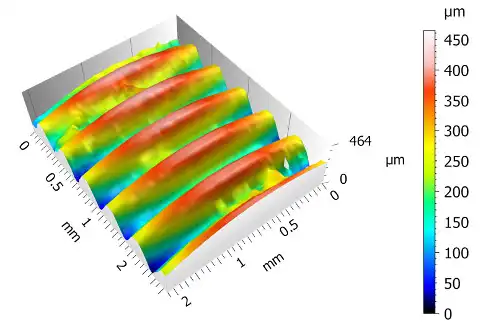 With an area based measurement of roughness parameters surfaces can be measured more detailed than with line based measuring. The measurement is furthermore independent of the direction of measurement. Another advantage is that single measurement sections can be placed parallel instead of linear. This way even small areas can be measured in conformity with standards.
