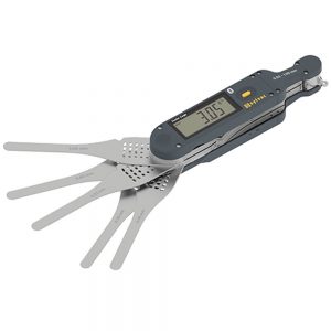 Az első digitális hézagmérő Bluetooth kapcsolattal. Az idomszer belső mérőeszközként is használható, köszönhetően a második lemezcsíknak.
